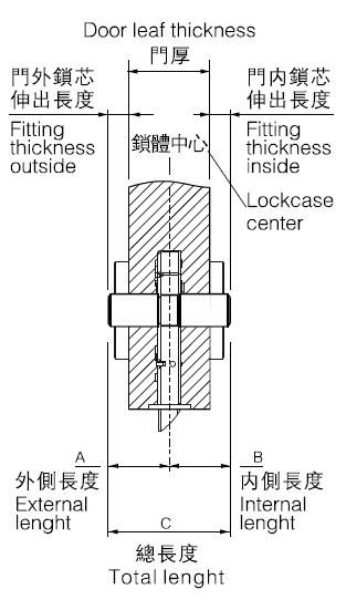 1. 鎖芯的總長(zhǎng)度等于門厚加上門兩側(cè)鎖芯突出長(zhǎng)度之和