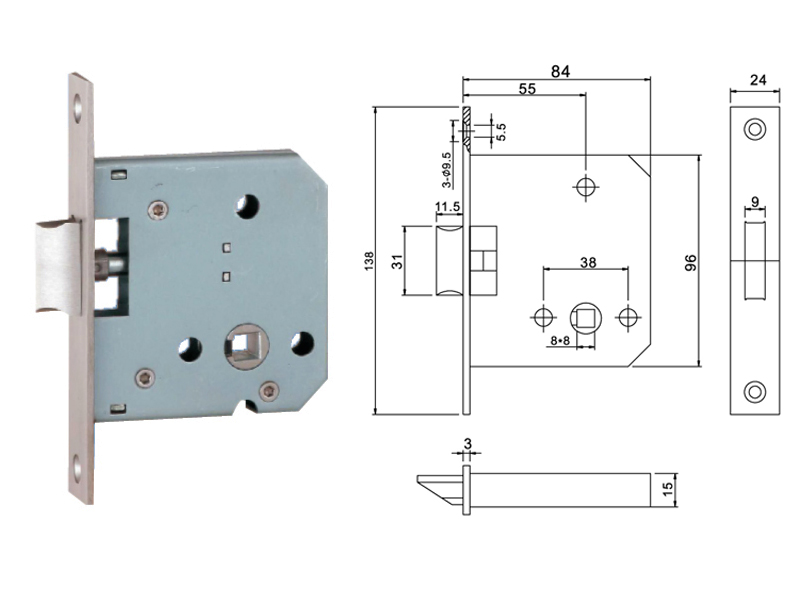 55ZL單舌鎖體通常用于通道門,防火門,管井鎖,不能反鎖