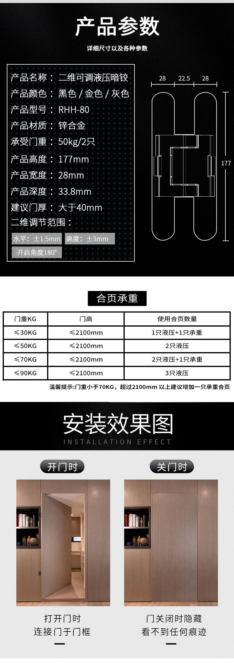 RHH-80 液壓緩沖合頁(yè)可調(diào)節(jié)隱形門(mén)暗鉸