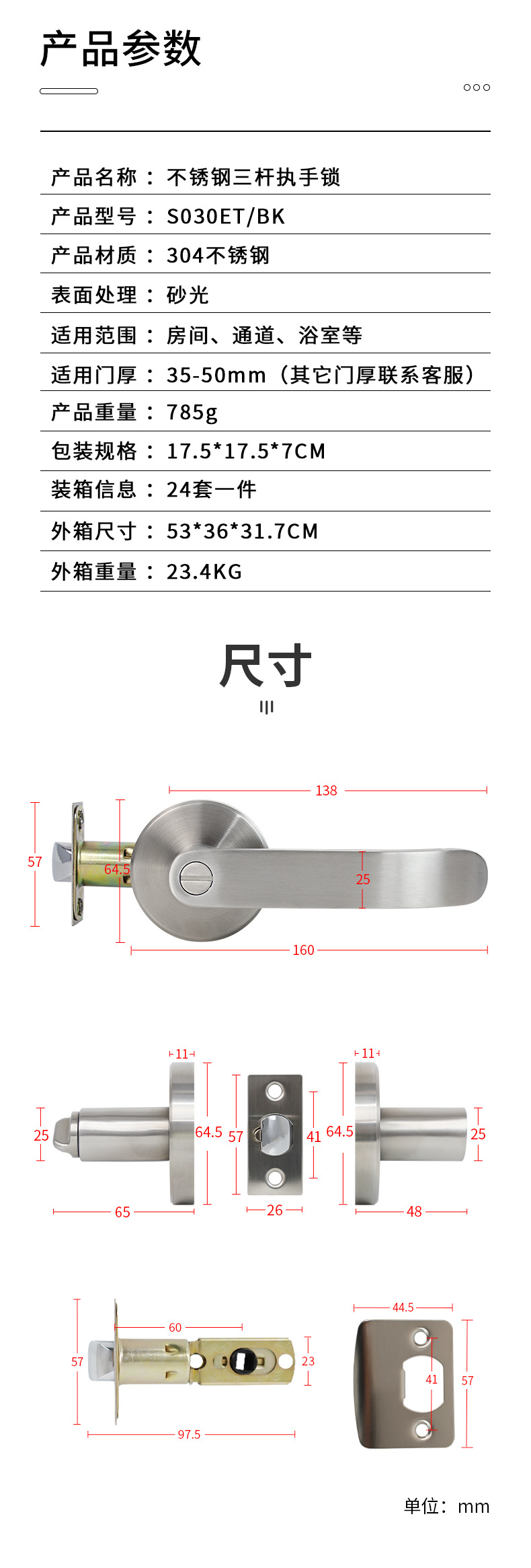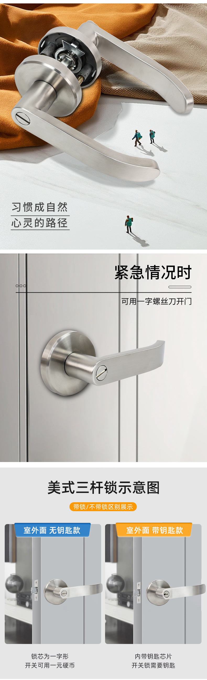 S030 帶鑰匙/不帶鑰匙歐式三桿執(zhí)手鎖