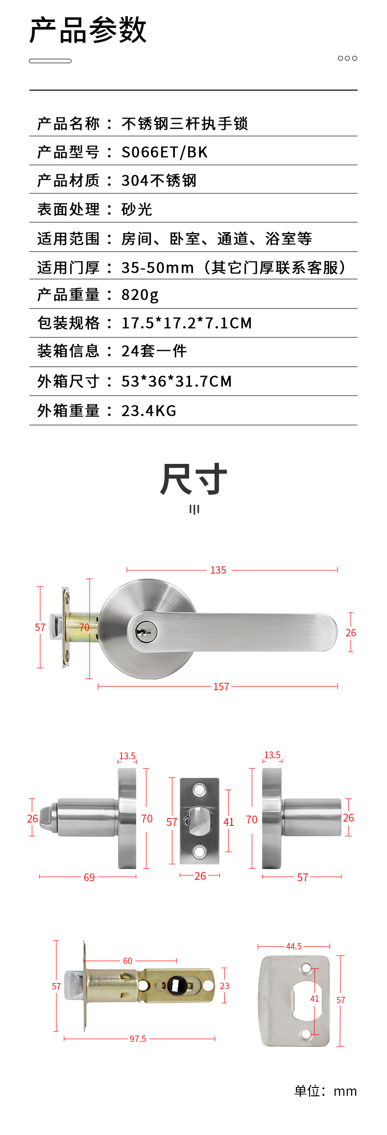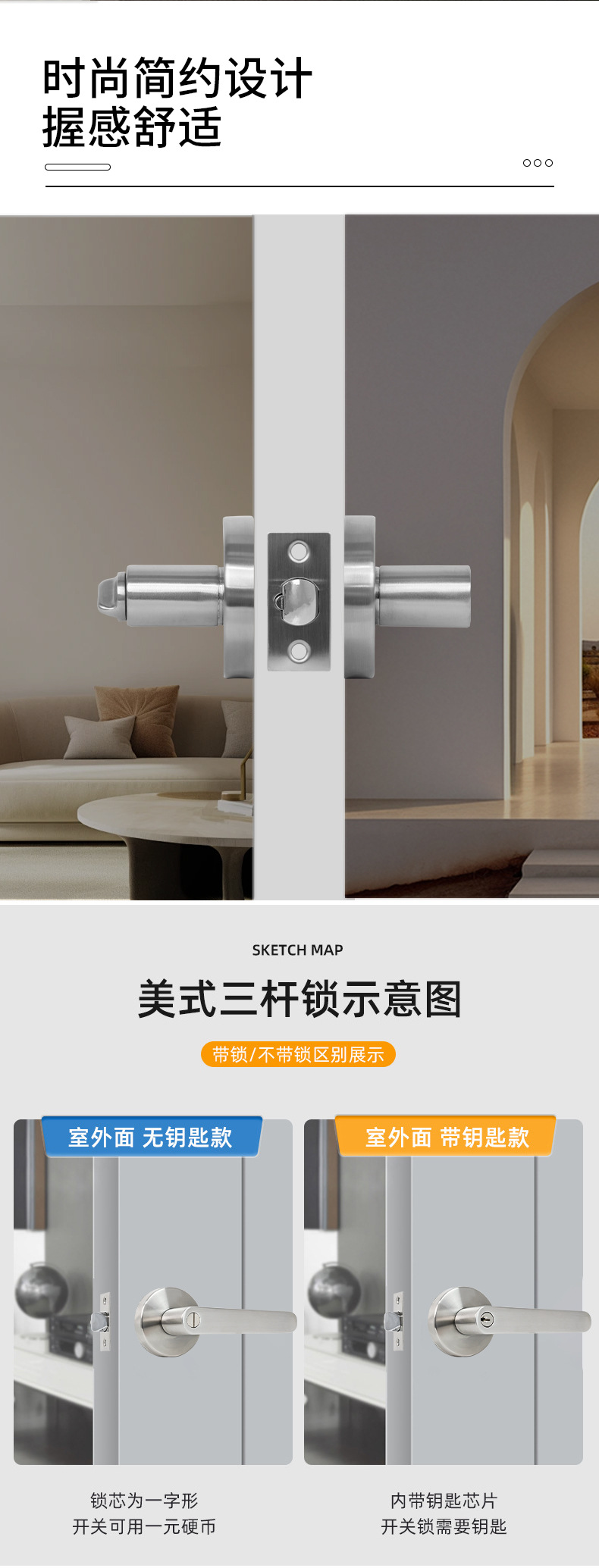 S066 不銹鋼304可調(diào)鎖體單舌三桿鎖