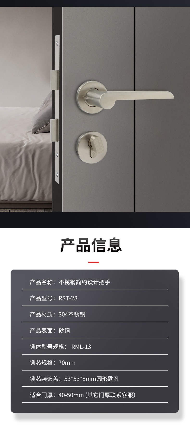 RST-28 不銹鋼304簡(jiǎn)約鎳?yán)z分體鎖