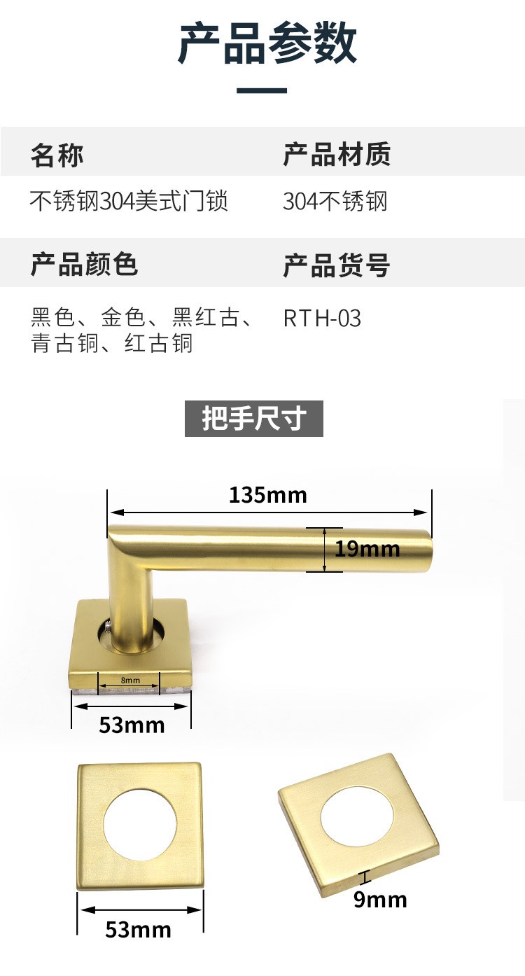 RTH-03 不銹鋼美式方蓋無鑰匙通道房門鎖