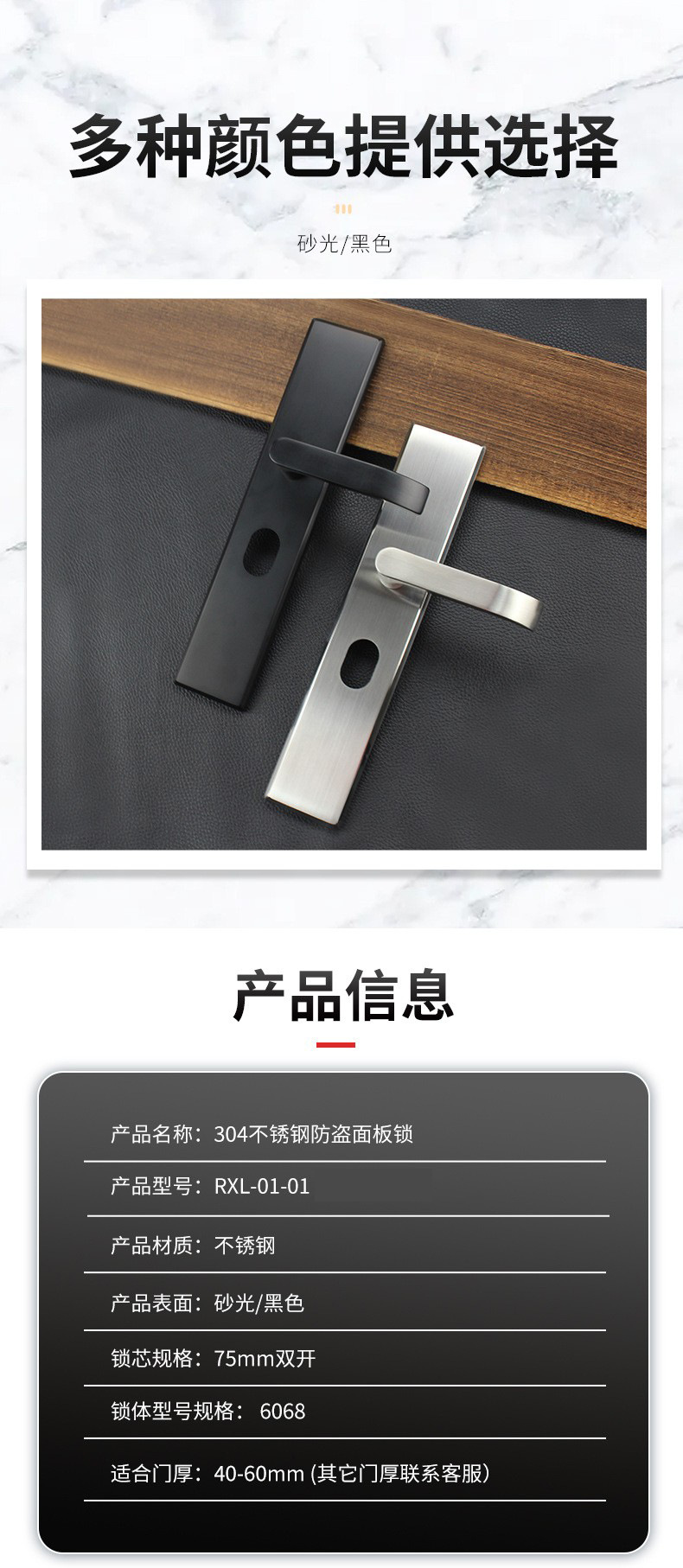 RXL-01-01 不銹鋼304防盜面板鎖套裝黑色