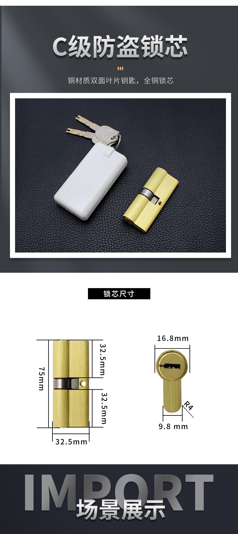 RXL-02-03 黑色防盜門鎖超C級(jí)鎖芯