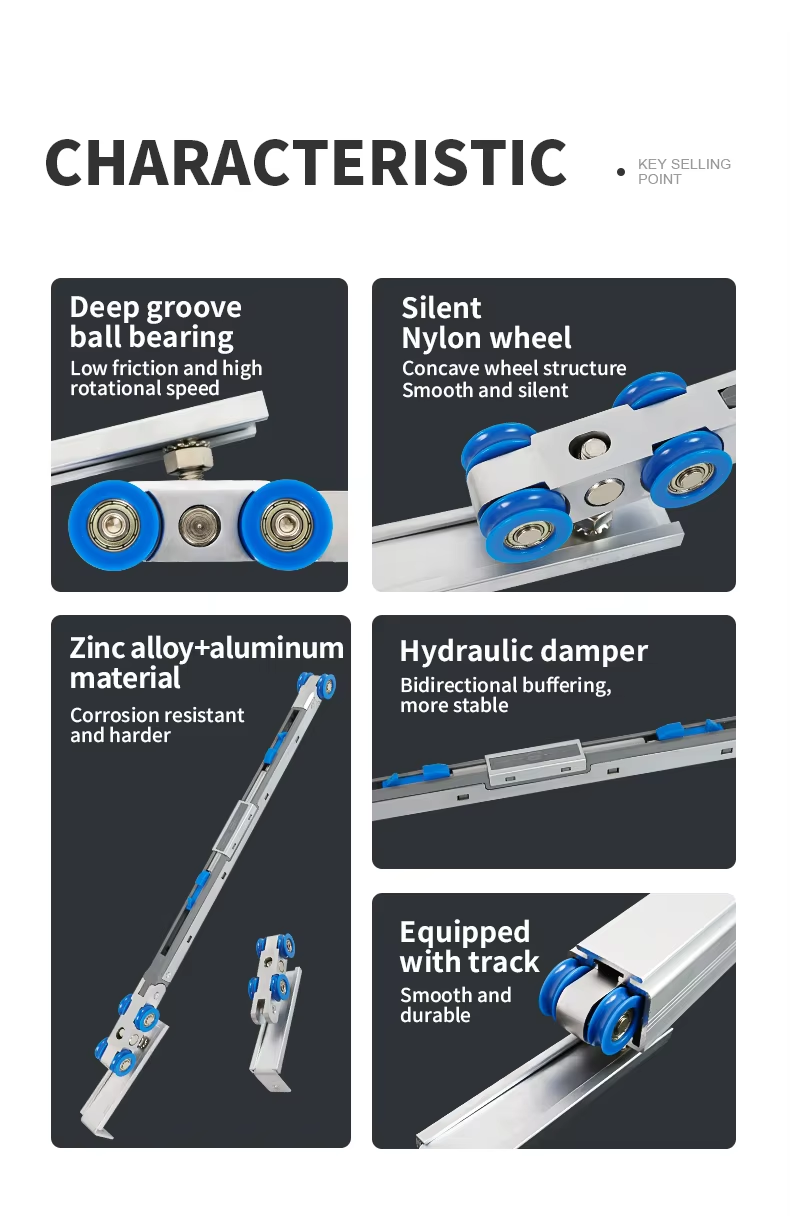 FC014 Soft Closing Damper Buffering Sliding Door Hanging Wheel Rail Kits
