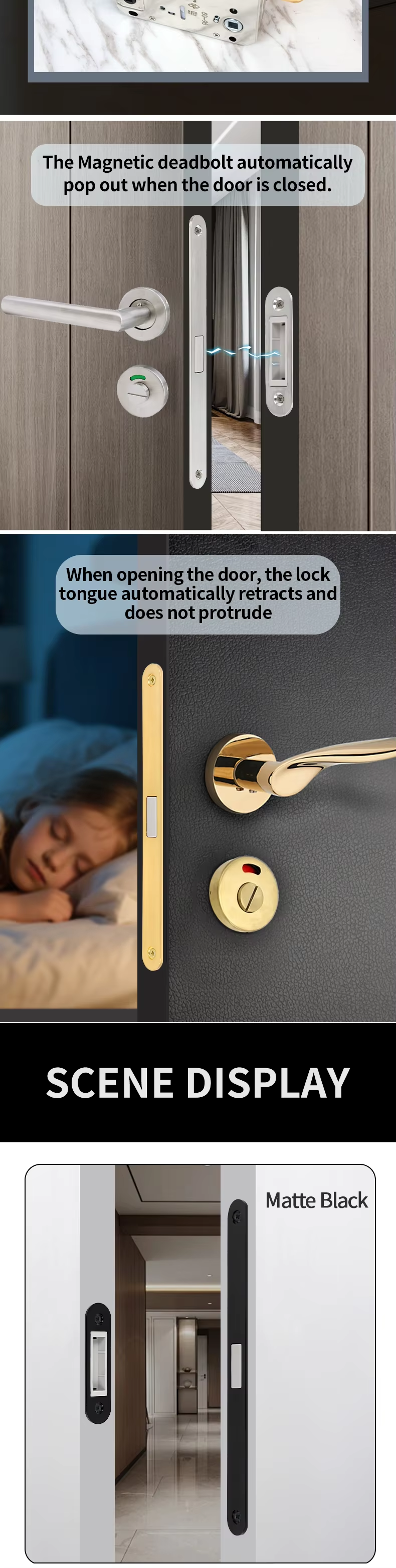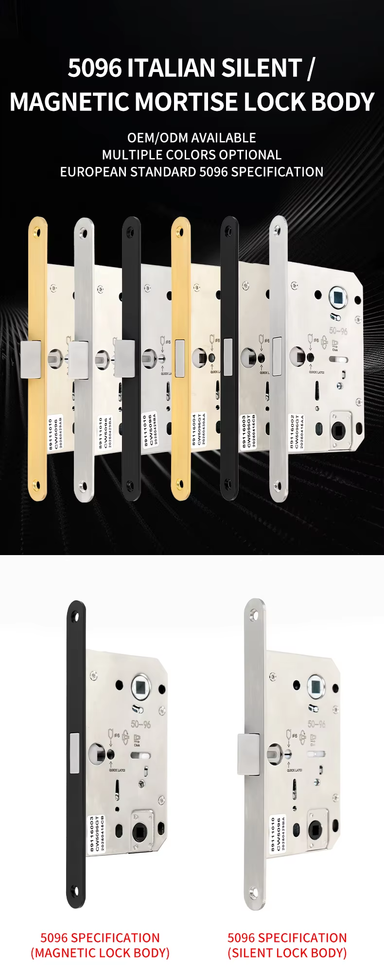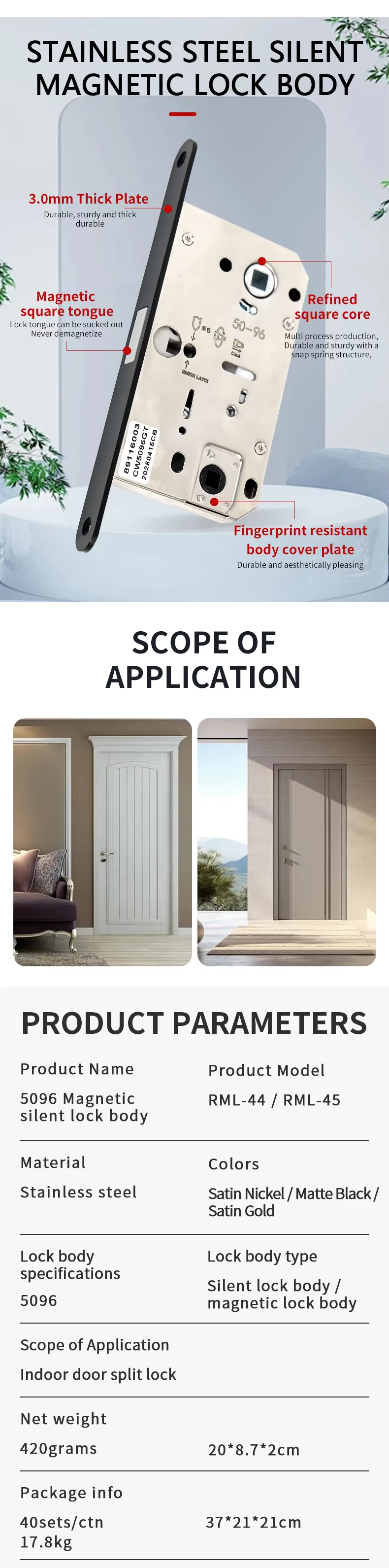 RML-44 RML-45 9650 Hole Distance Silent Magnetic Color Plate Deadbolt Invisible Latch Lock Body