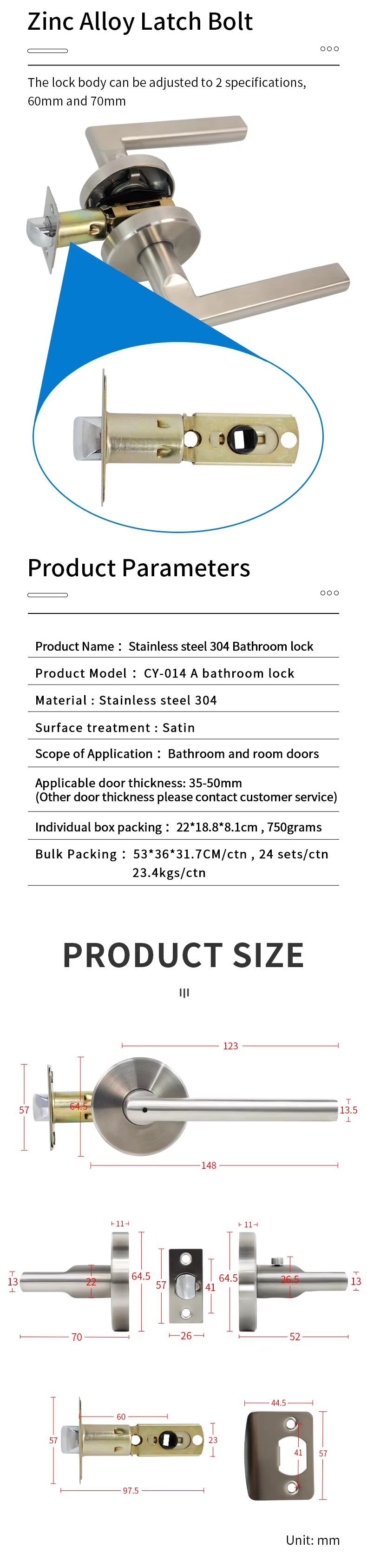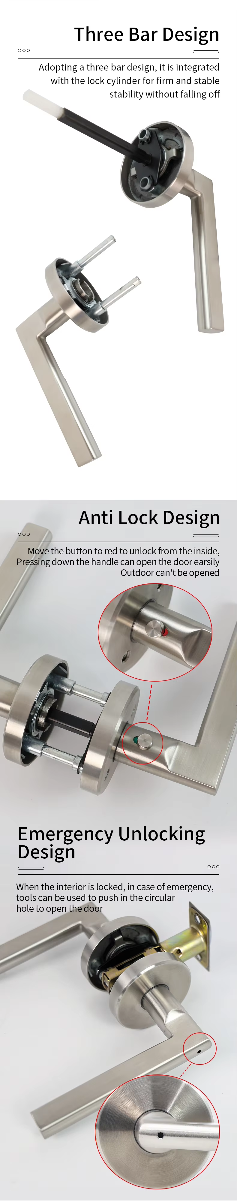 CY-014A Stainless Steel 304 Heavy Duty Three-Bar Door Locks