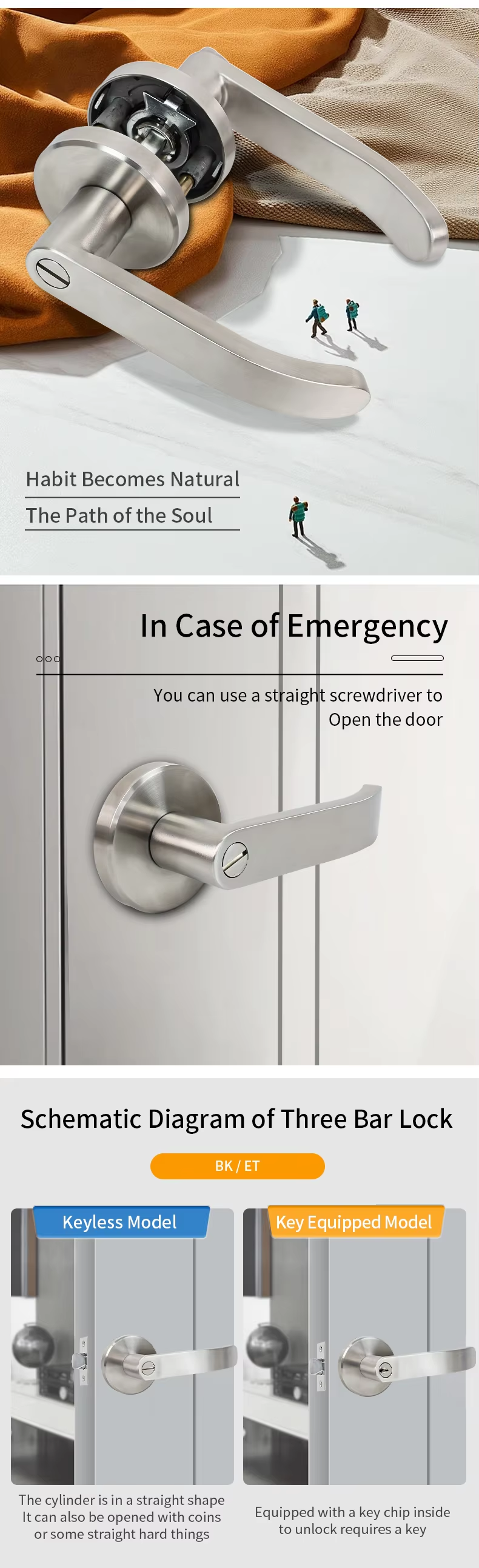 S030BK Keyless Entry Passage Version Tubular Lock SS304 Satin