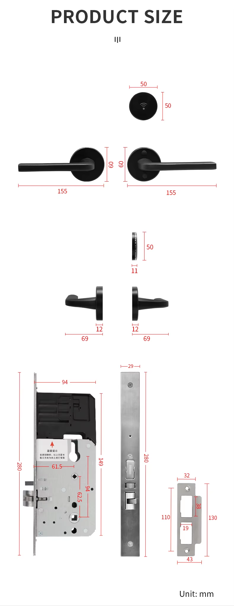 SHL-152-112 Aluminum Alloy Lever Handle High Security Hotel Smart Lock